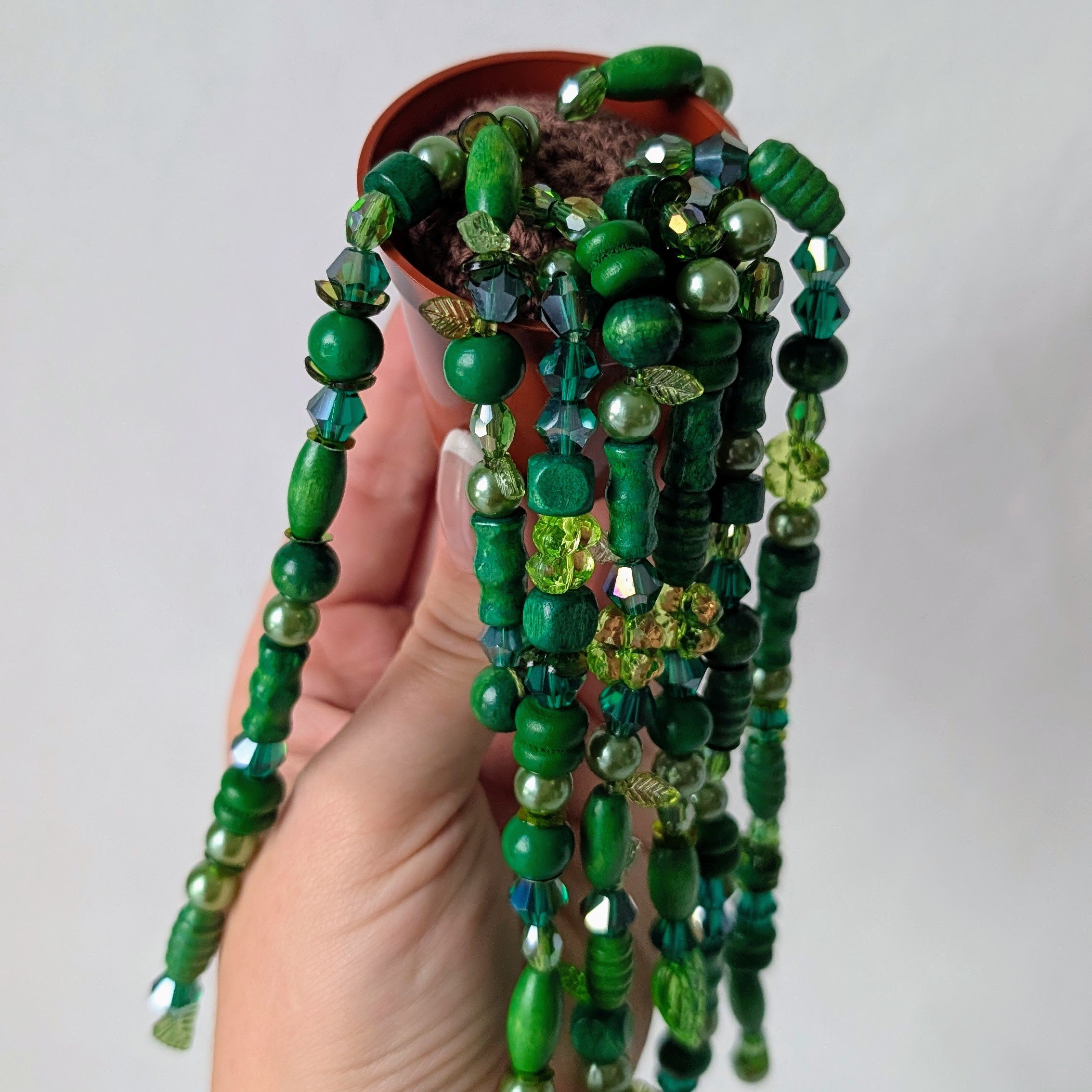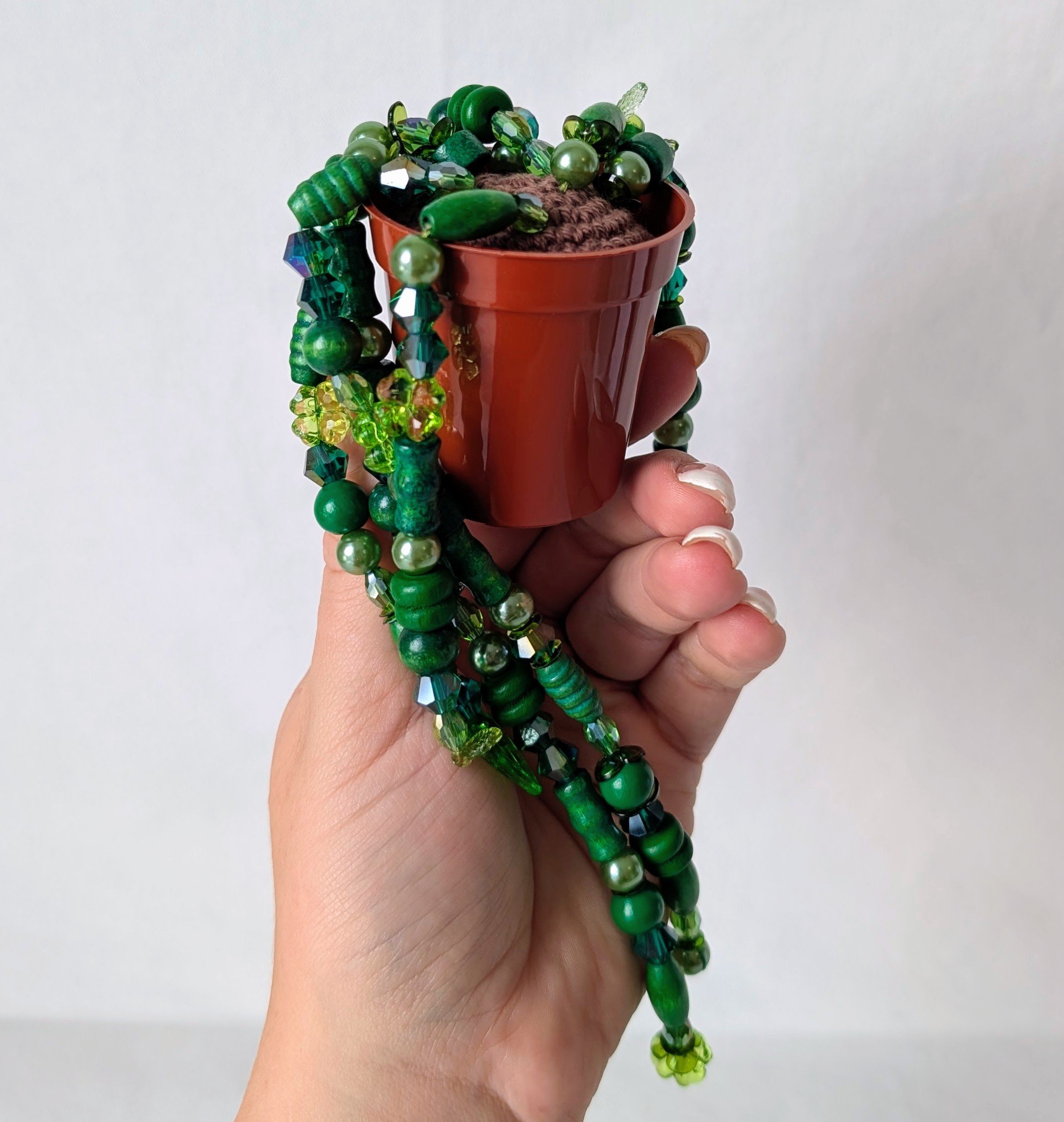 Petite plante à perles réalisé à la main, au crochet et avec des perles.